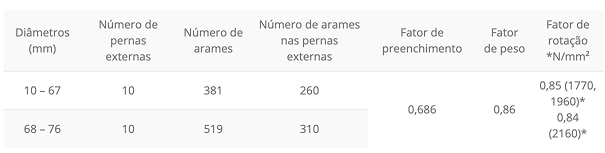 - Disponível em torção direita e torção esquerda