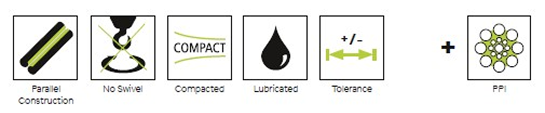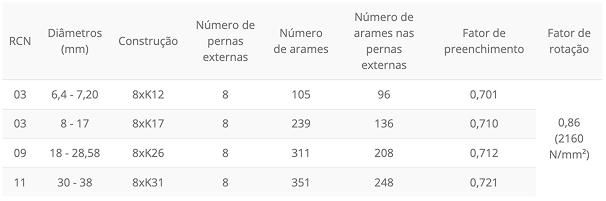Construção em Paralelo / Proibido o uso de distorcedor/ Compactado / Lubrificado / Tolerância de Diâmetro +0% a +5%/ Opção de extrusão plástica da alma
